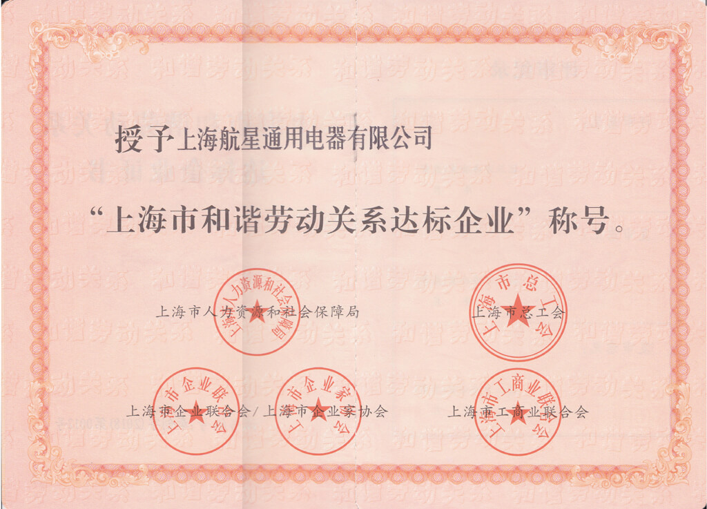 航星电器企业经营理念以人为本,积极维护员工合法权益,荣获“上海市和谐劳动关系达标企业”称号