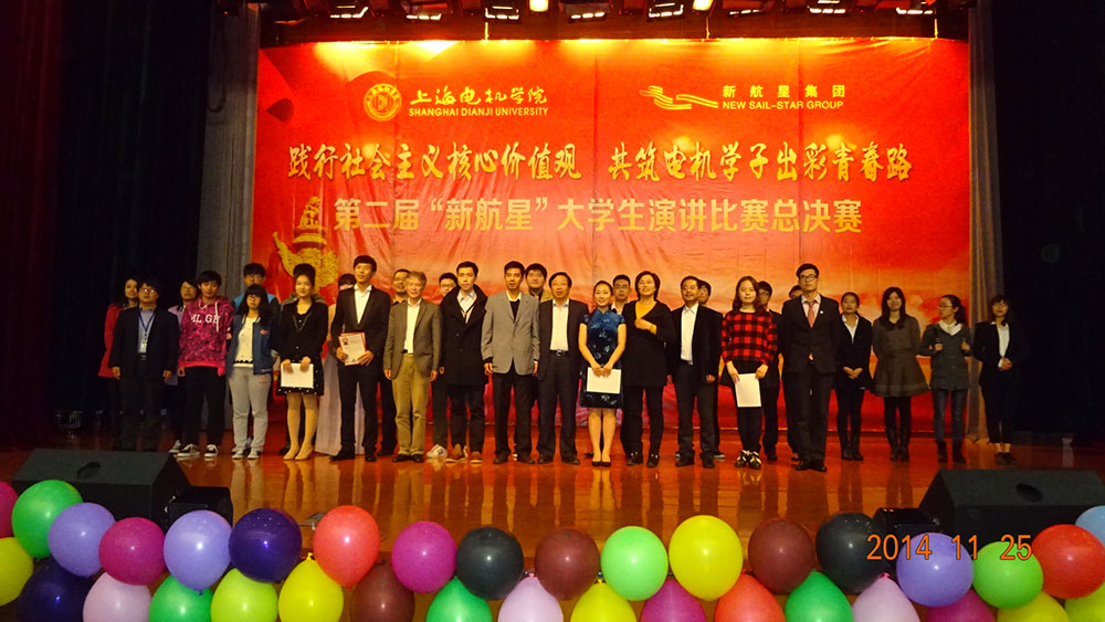 2014年11月25日下午,上海电机学院第二届“新航星”演讲比赛总决赛在临港校区小剧场举行。本次总决赛以“培育和践行社会主义核心价值观 共筑电机学子出彩青春路”为主题,我集团董事长(电机学院78级校友)何志明先生,电机学院副校长焦斌、学工部、宣传部等职能部门负责人以及我集团法务部主任赵旭敏、董事办主任张琛、航星电器总助于晶晶等应邀出席。复旦大学副教授、传播学博士、中国传播学会会员、章勇宏老师,复旦大学研究生演讲学会会长刘祎旸、复旦大学哲学学院团学联主席周磊担任专家评委,来自电机学院各个二级学院的大众评委24名同学及全校500名师生代表参加了本次比赛。